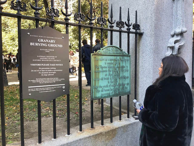 Then we were off on the Freedom Trail. First stop was the Granary Burying Ground, Boston's third oldest cemetery founded in 1660. Current residences include Paul Revere, Samuel Adams, John Hancock and members of Ben Franklin's family.